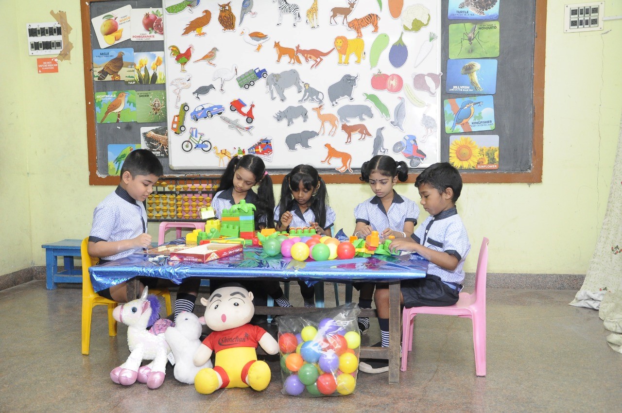 Pre Primary Section: We have introduced a Play Group for the toddlers aged 2 and above. Purpose is to make them familiar with the school atmosphere and develop their learning through play-way method. Please note that it is a completely ‘bag-free’ method of education.